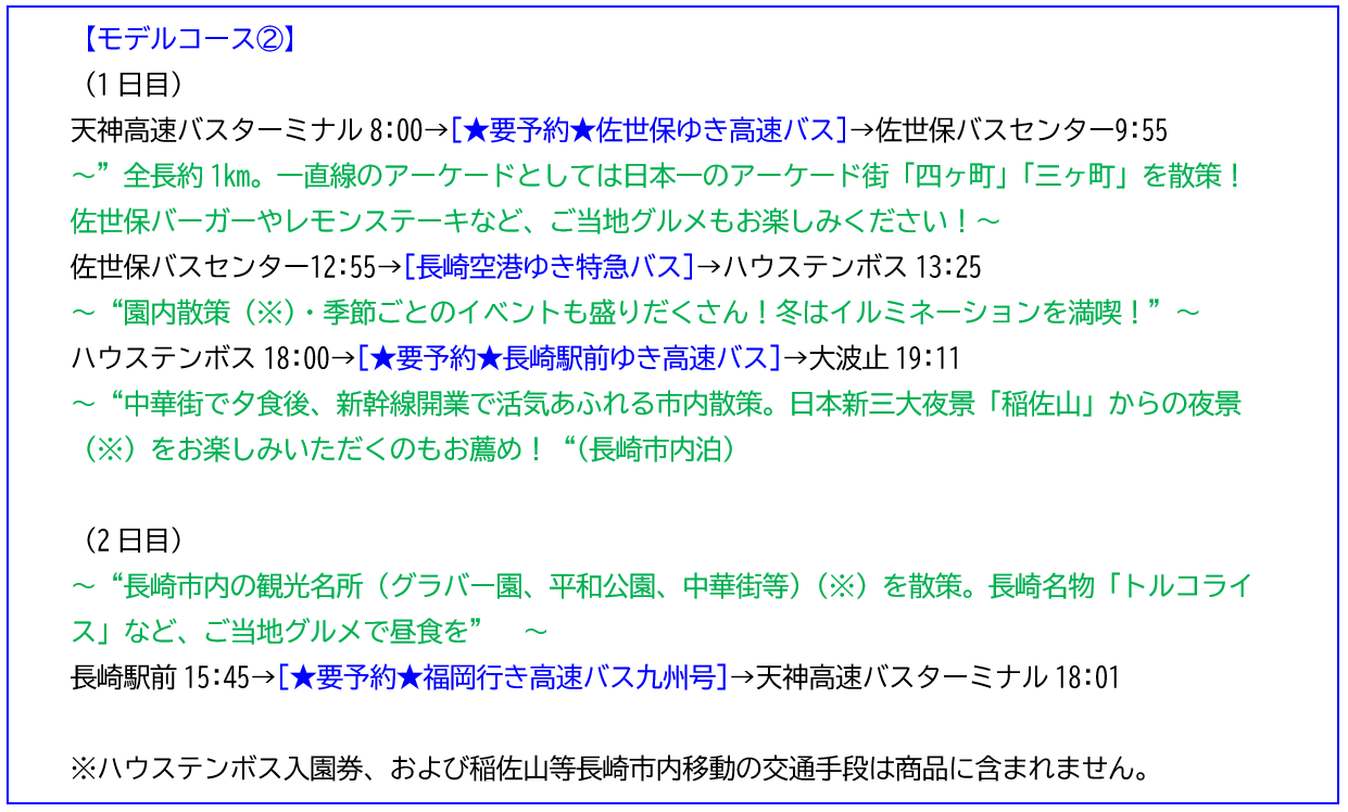 【「とりっぷきっぷ長崎・佐世保・ハウステンボス」モデルコース】