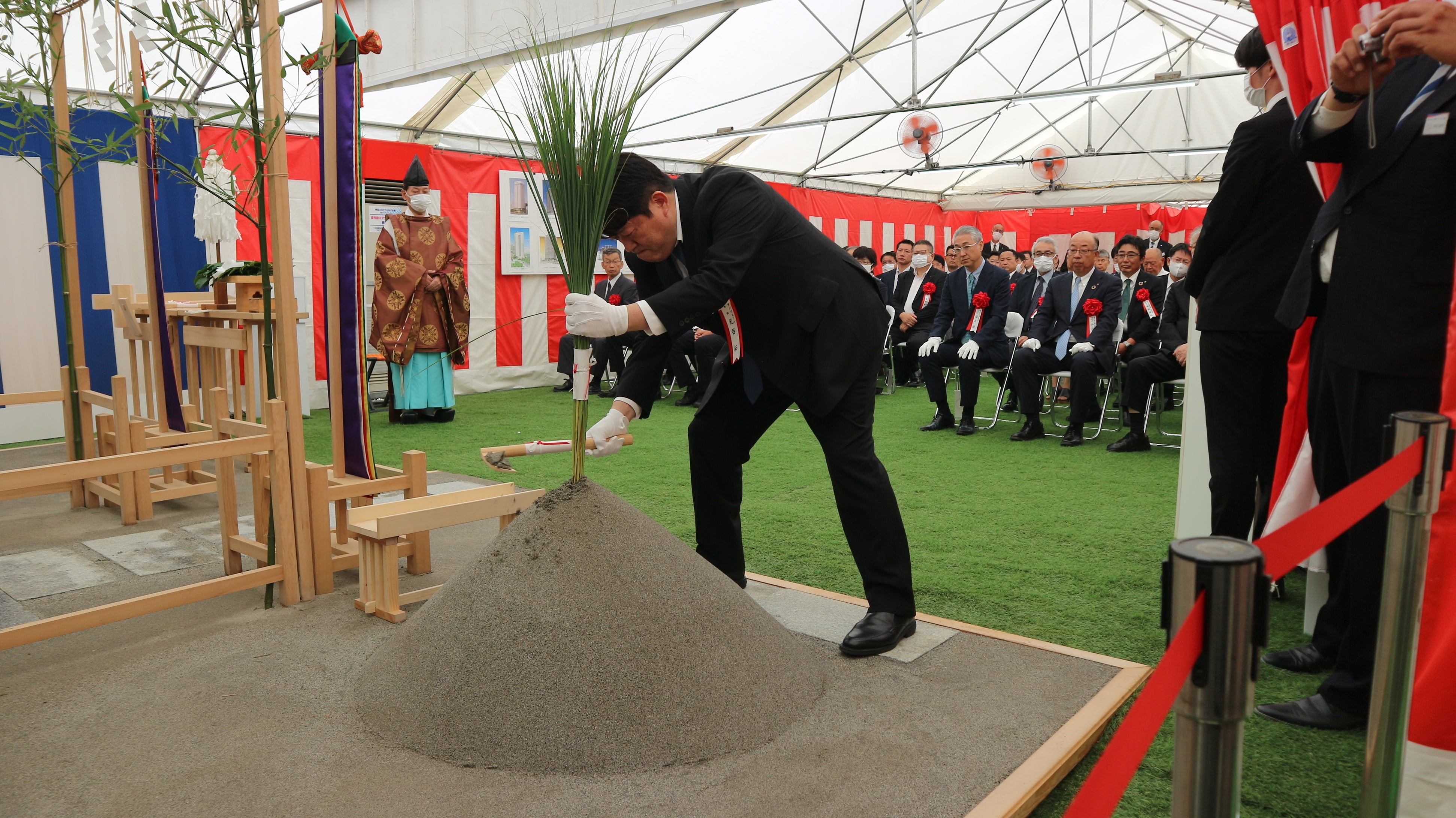 起工式において、アパグループ専務 元谷 拓は、「アパホテルはサッカー日本代表のスポンサーにもなり、日本代表と共に熱く戦っている。アパホテルはシティーホテルやリゾートホテル、旅館やビジネスホテルの良いところを集約し、先進的で高品質・高機能・環境対応型をブランドコンセプトにした「新都市型ホテル」を展開し、ビジネスやインバウンド、修学旅行、冠婚葬祭や地域コミュニティー需要など全方位で宿泊をして頂ける。観光大国日本の為に受け皿として、コロナ禍においても計画や工事を止めることなく進めてきた。鹿児島県では直営ホテル2棟目となるが、フランチャイズのアパホテル〈鹿児島国分〉や〈鹿児島天文館〉と共に連携して、鹿児島県の宿泊需要の創出に寄与して行きたい。鹿児島県はとても魅力のある県である為、経済発展の受け皿となるホテルを皆で作り、完成した暁には多くのお客様に感動を与えられるよう、また地域に愛されるホテル作りを目指し進化して行きたい。」と述べた。
