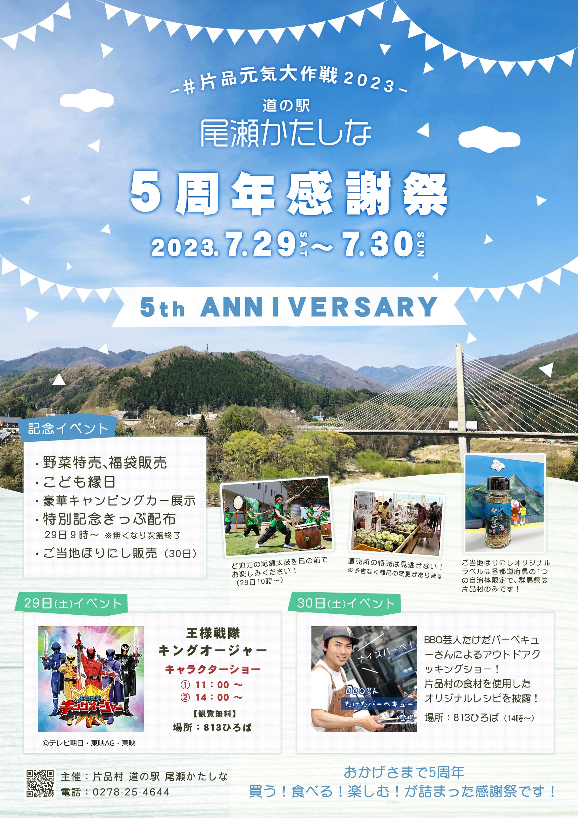 おかげさまで『道の駅 尾瀬かたしな』は5周年を迎えます。日頃の感謝を込めまして、7月29日(土)、30日(日)の2日間に感謝イベントを行います。