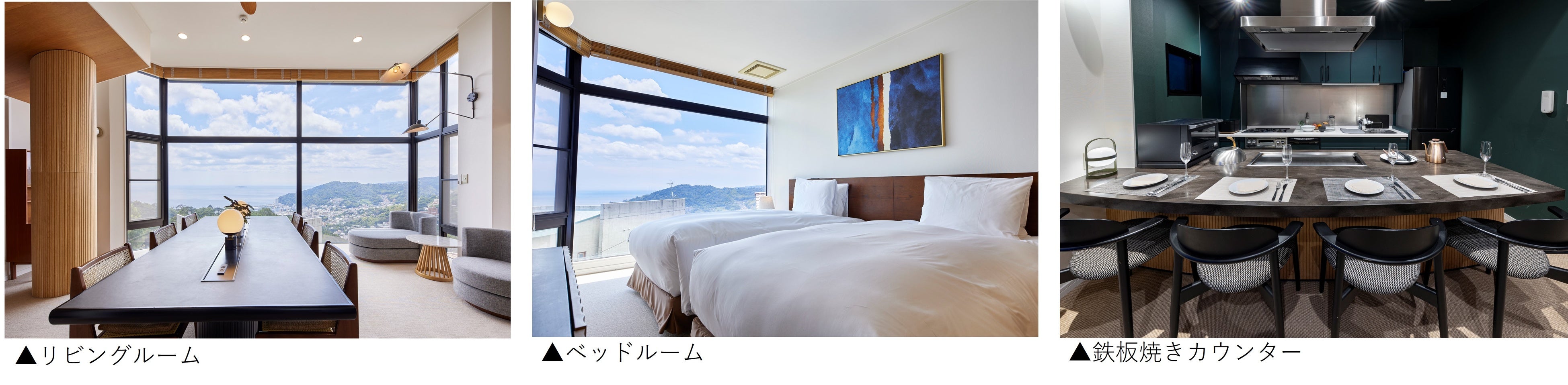先月6月30日に新たにオープンした3施設は、それぞれに個性あふれる眺望や空間で、自由で新しいライフスタイルをご体験いただけるリゾートです。全ての棟に温泉を完備することでいつでもお好きな時間に湯浴みを愉しめ、オーシャンビューや熱海海上花火大会を望む絶景など、非日常を感じるひとときをお過ごしいただけます。