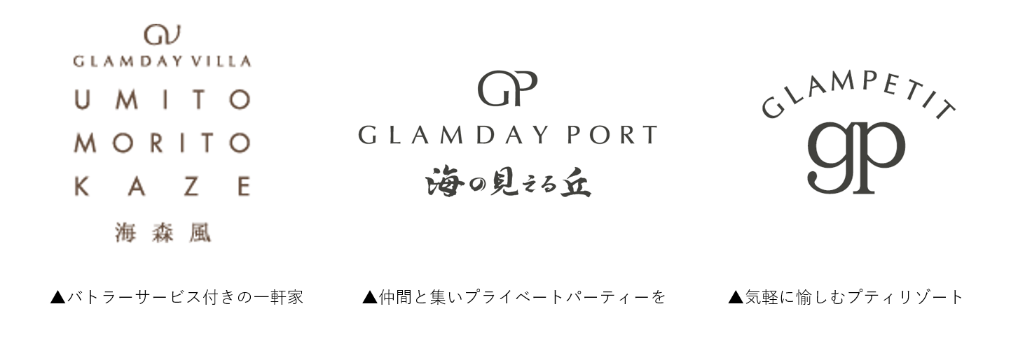 GLAMDAYシリーズは、2017年に「GLAMDAY VILLA 海森風」(所在地:静岡県熱海市)が誕生、続いて沖縄地区に「GLAMDAY VILLA OKINAWA 中村邸」を開業するなど、GLAMOROUS‟魅力的”な1日を過ごすリゾートとして多くのお客様にお喜びいただいております。