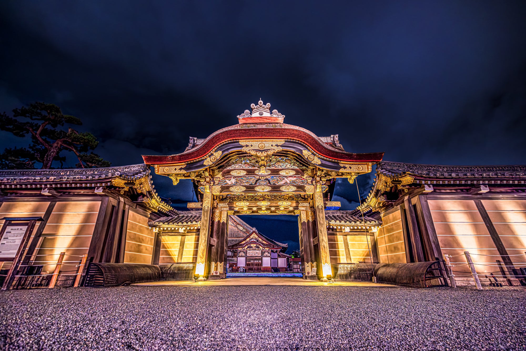京都を代表する歴史的建造物である「唐門」の雄大な建築美を引き立てるライトアップで、夜にしか見ることのできない二条城の厳かな様子を堪能。 様々な生き物の彫刻が昼間とは一味違った表情で迎え入れてくれます。
