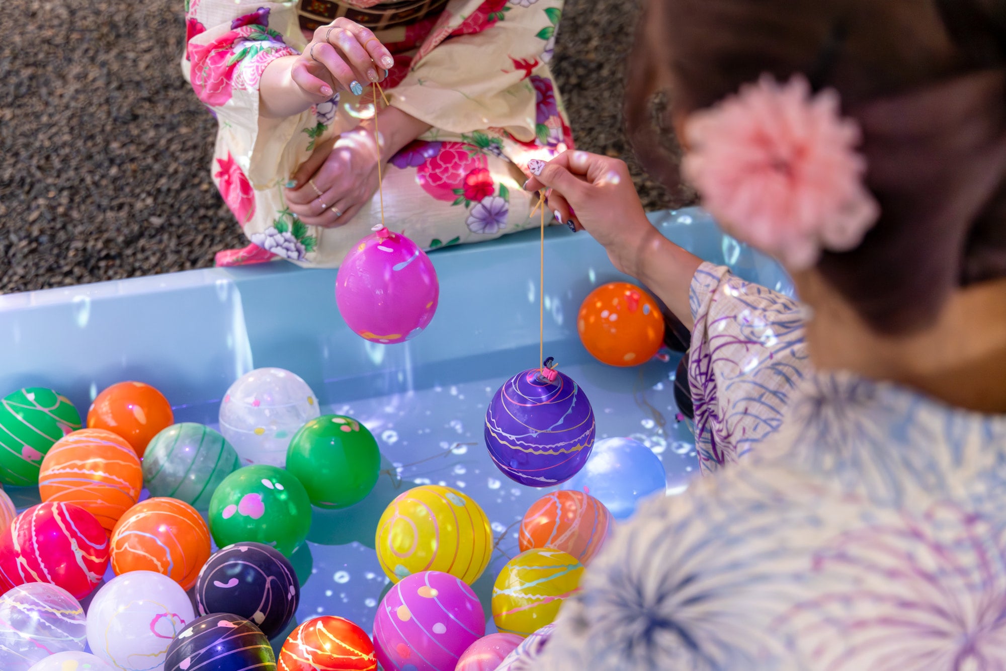 二条城とゆかりのある弓矢、さらには縁日定番のスーパーボールすくい、ヨーヨー釣りが楽しめる縁日屋台。※各1回300円(税込)