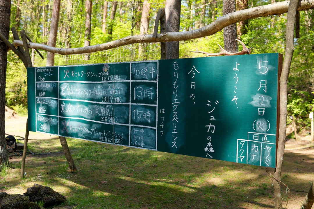 森を歩いて、この地の成り立ちについて学ぶこと、地球環境や森の循環について考えること、倒木を加工して丸太や薪にして火を起こすこと、森に秘密基地を作ること、森を裸足で歩いてみること、洞窟を探検してみること、夜にムササビを探しながら散歩してみること。