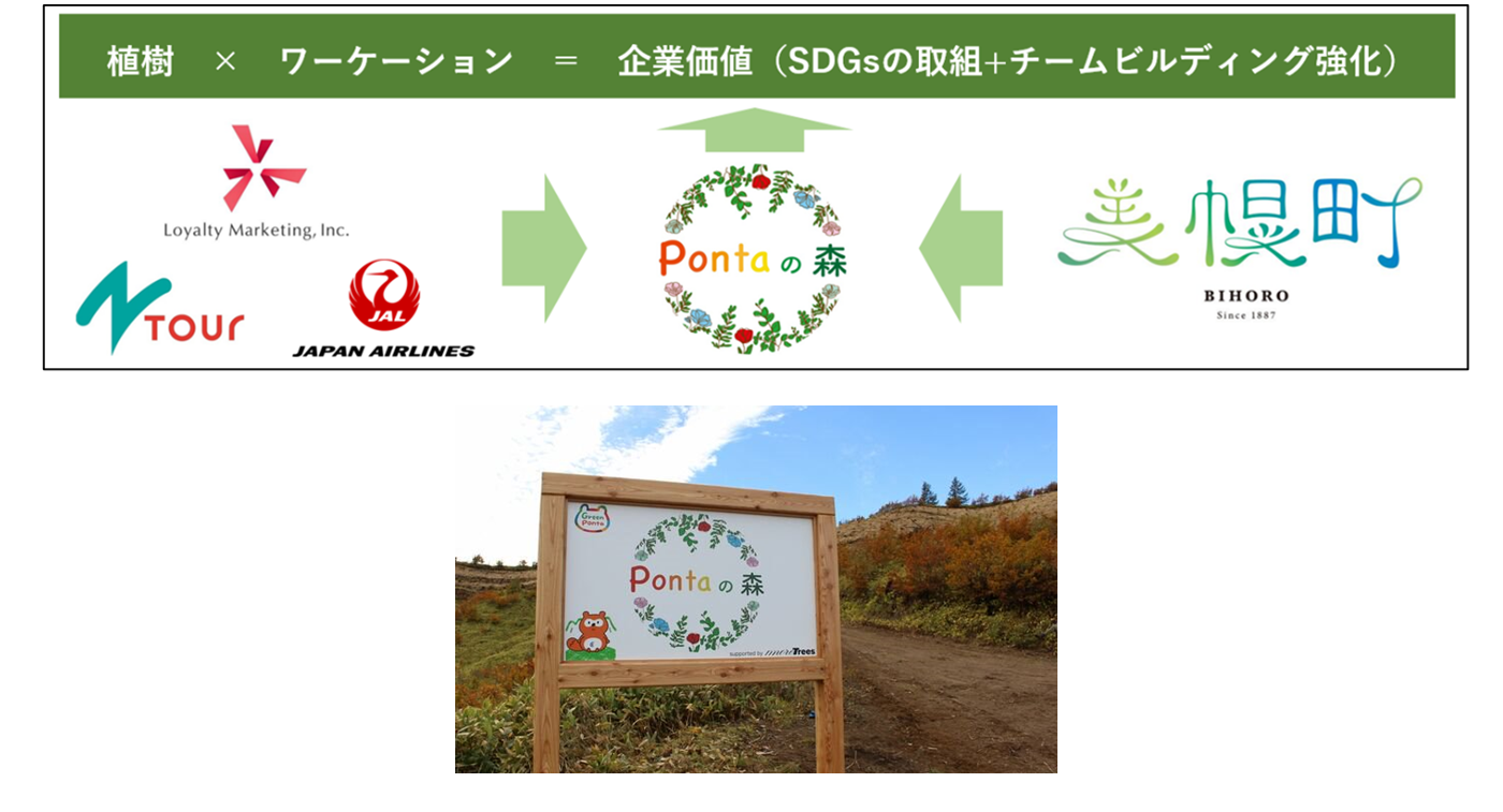 このたび3社が協力し、植樹体験を通じた環境保全学習と組織におけるチームビルディング強化を図るためのソリューションを構築し、北海道美幌町にある「Pontaの森」での植樹や同町での農作業体験を組み込んだ本企画の販売に至りました。