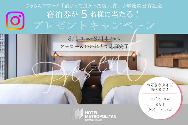 ホテルメトロポリタン川崎公式Instagramをフォロー&対象記事に「いいね!」で完了