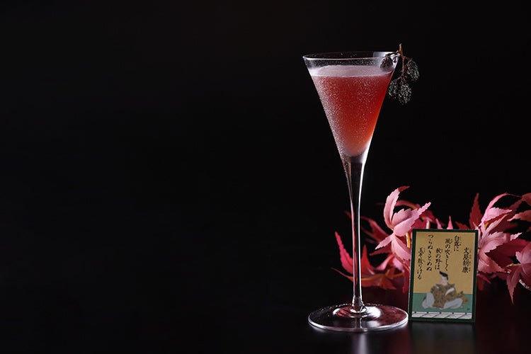 今回の『百人一首ランチ』では、百人一首の中でもとりわけ有名な“ちはやぶる…”の秋の歌にちなんだ献立に、甘味は大津市にある「叶 匠壽庵(かのう しょうじゅあん)」による『あも歌留多』を添えて。また第21弾となる『百人一首カクテル』では、秋の歌の情景を描く創作カクテル2点が誕生しました。100首コンプリートを目指して、現在47首までのカクテルが完成しています。