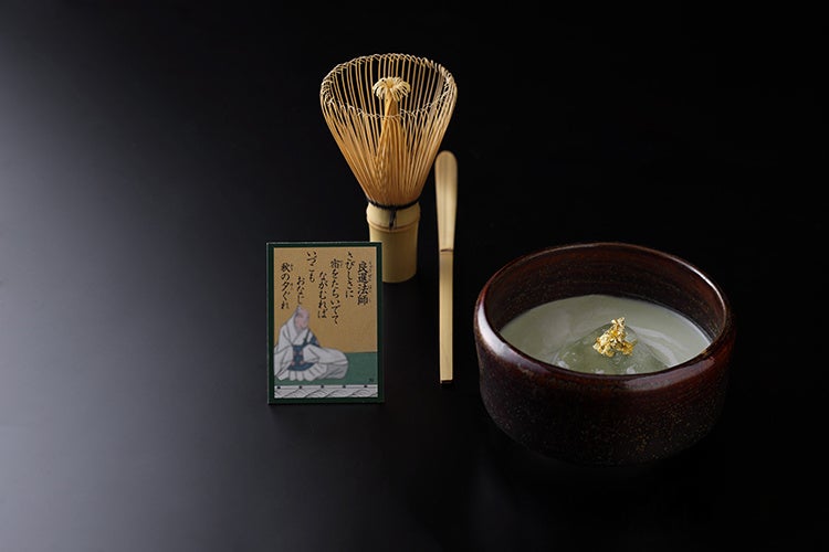 比叡山の僧侶であった良暹法師が大原に隠棲した頃の歌といわれています。法師の静かな暮らしぶりを想像し、お茶をイメージしたカクテルに。