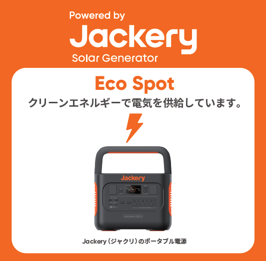 また、フジロック会場内では、EcoSpotとしてJackery ポータブル電源を活用し電源を供給することで、環境に配慮したフェスづくりに貢献しております。