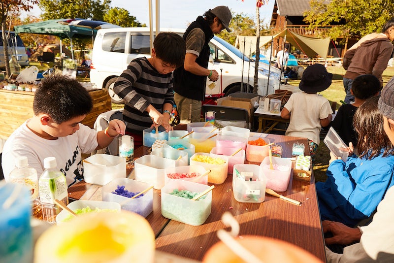 その場で初めて出会った人同士で即席チームを作って本気で対戦する運動会や、ただ水を掛け合うだけのハイテンション最強企画の水かけ祭りほか、キッズエリアでは子ども向けワークショップなどが開催される。