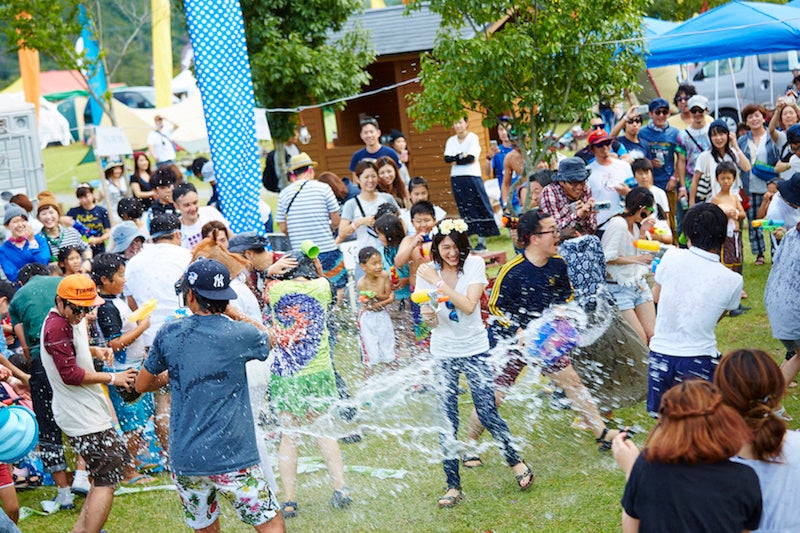 その場で初めて出会った人同士で即席チームを作って本気で対戦する運動会や、ただ水を掛け合うだけのハイテンション最強企画の水かけ祭りほか、キッズエリアでは子ども向けワークショップなどが開催される。