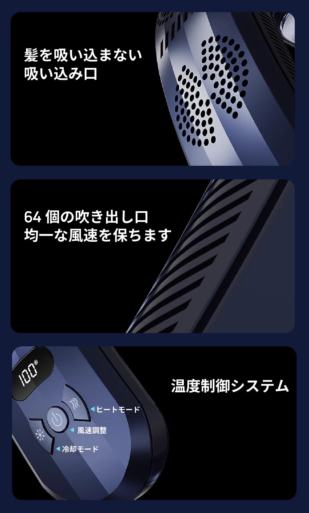5つの強力なファンと風量増幅技術を駆使し、風速も3段階調整可能で、あなたの体を涼しい風で包み込みます。