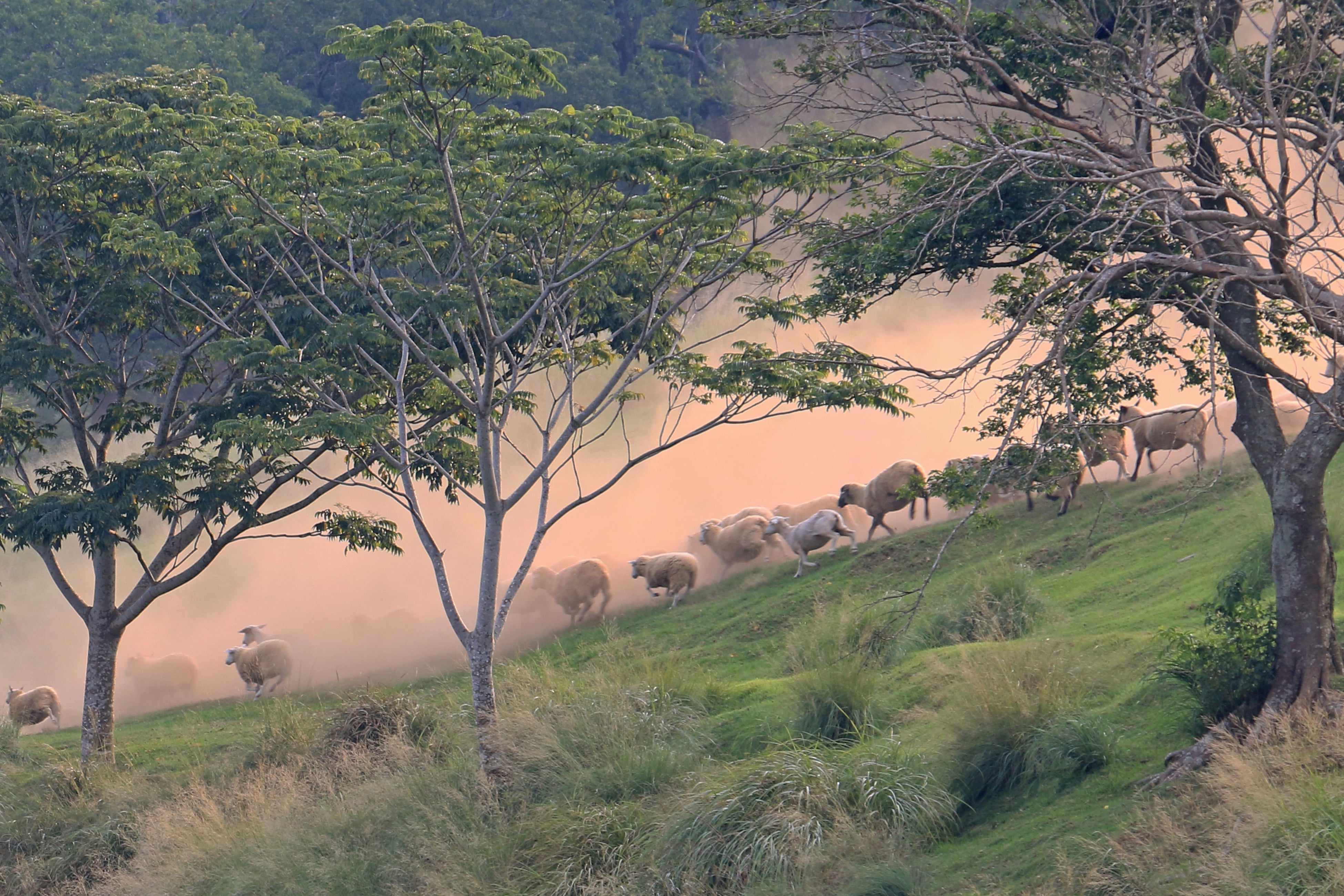 約200頭の羊たちが、夏の西日に照らされながら圧巻の行進を披露!