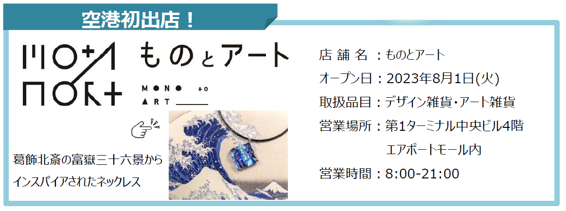 2023年8 月1 日( 火) 、第1 ターミナル中央ビル4 階エアポートモール内にデザイン雑貨・アート雑貨を取り扱う「ものとアート」がオープンいたします。