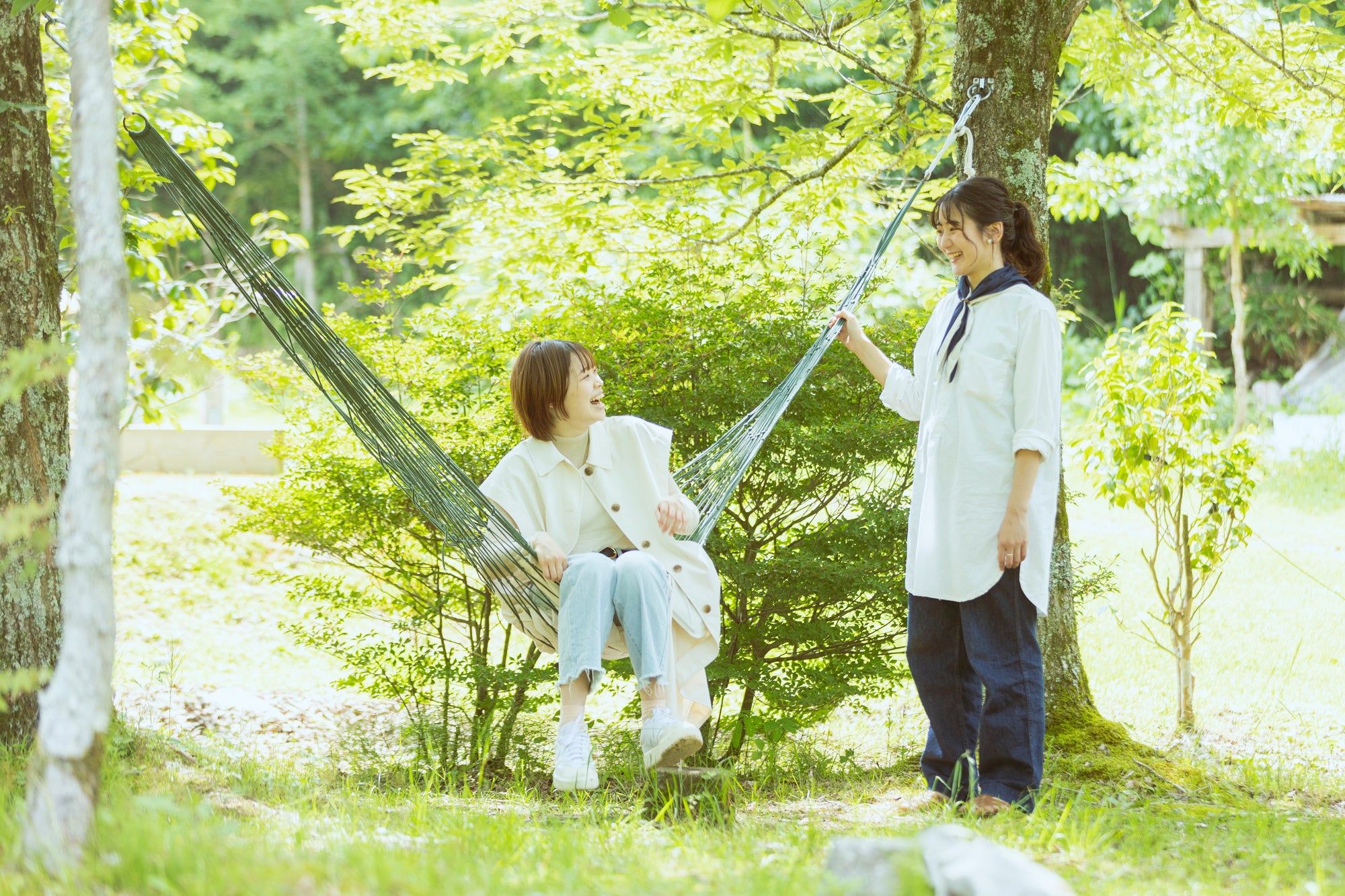 青々しい緑の中で目を瞑り、草花の香り、虫の囁き、川のせせらぎに癒やされる。夏の思い出に、大切な人とのやすらぎの時間をザランタン三瀬高原でお過ごしください。