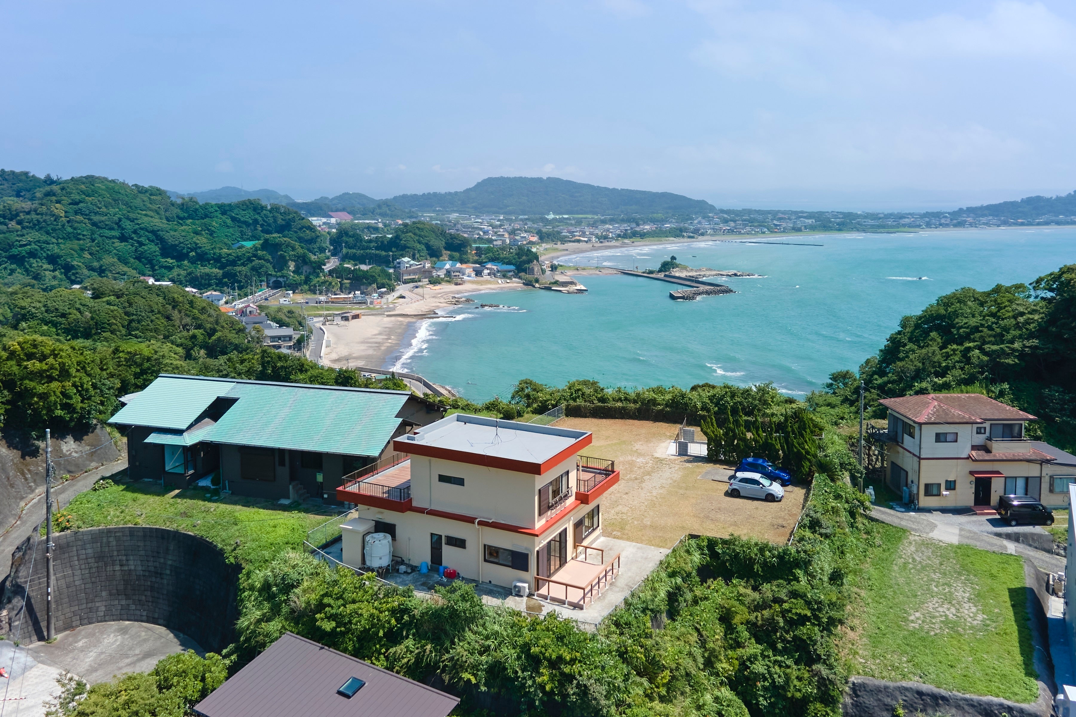 「スイートヴィラ GRANVIEW南房総」は、千葉県南房総の富浦沖を一望する絶景オーシャンビュー貸別荘で、近くの「豊岡海岸」までは車で約1分という至近な場所に位置し、海水浴や磯遊び、富浦周辺の人気スポット巡りを楽しむには、最適な施設となります。