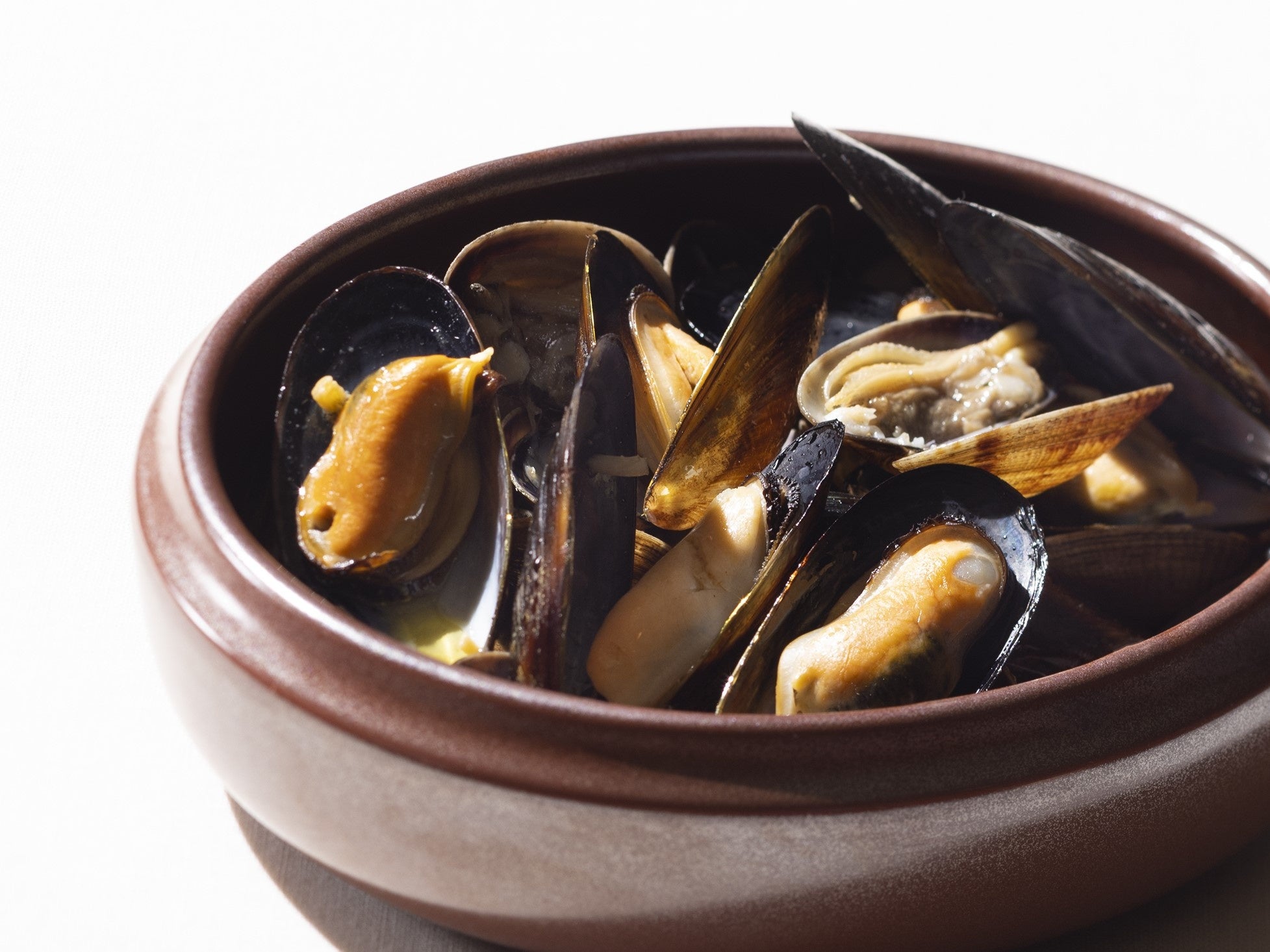 北海道産浅蜊貝とムール貝の白ワイン蒸し