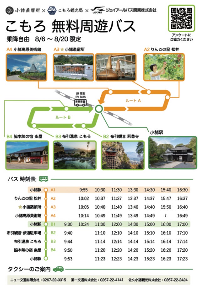 今回運行するこもろ無料周遊バスの時刻表・路線図は、以下をご確認ください。