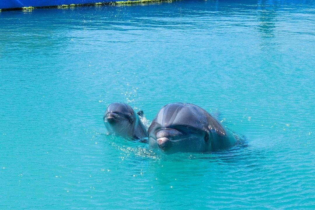 やんばる自然体験が楽しめる、マリンピアザオキナワ・もとぶ元気村(沖縄県国頭郡本部町 ディレクター久高秀一 http://m-piazza.com/)は、2023年6月27日に産まれた、バンドウイルカの赤ちゃん「スラ」誕生を記念して、イルカたちを近くで見学できる「ドルフィンウォーキングツアー」付きの宿泊プランを発売します。