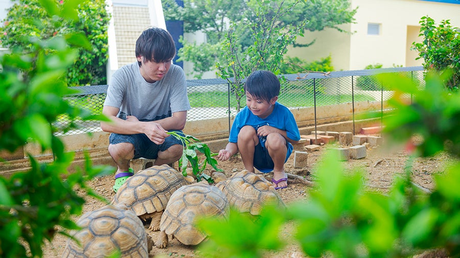 シャボン玉や輪投げ、リクガメ観察、お子さま用の海水プールなど