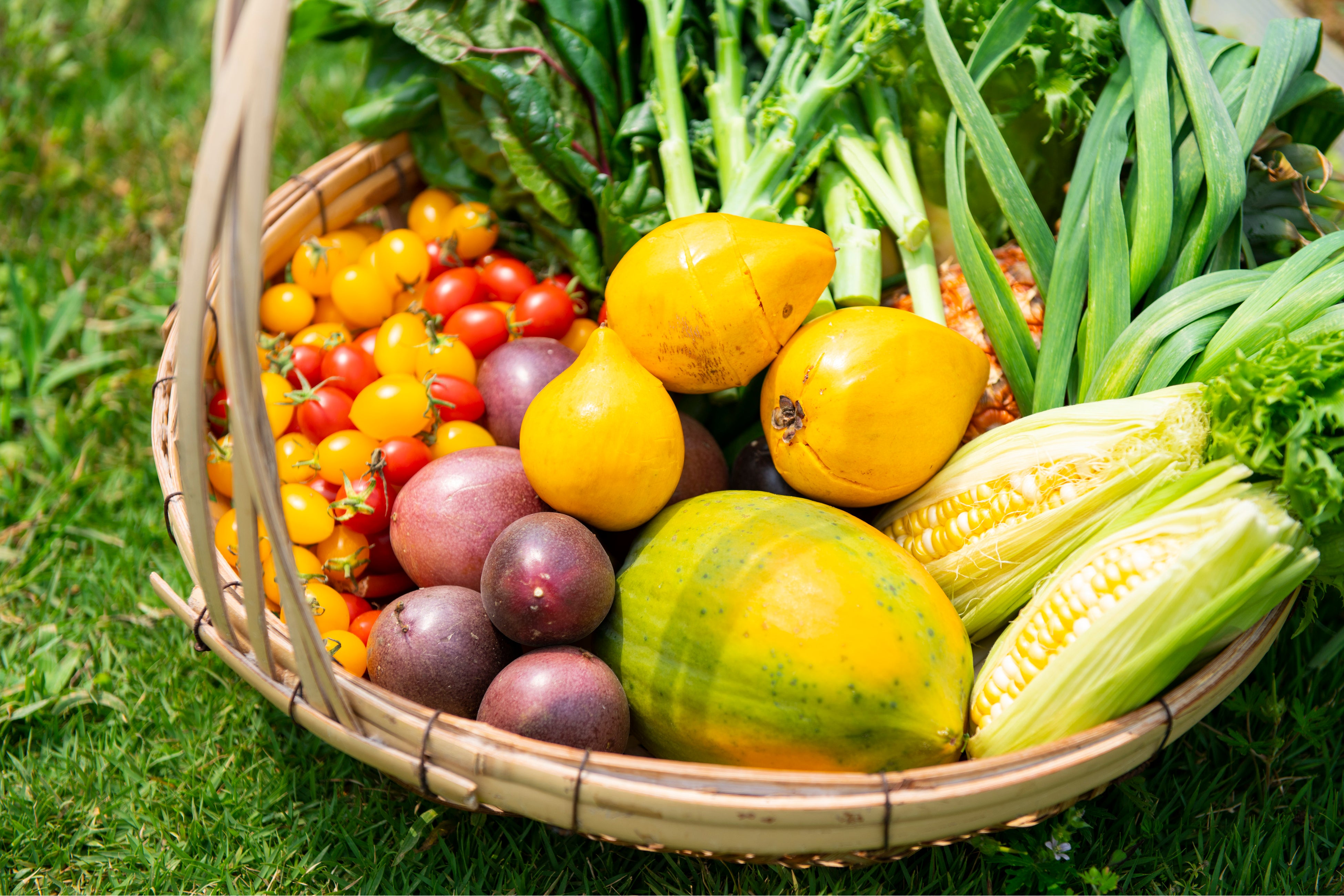 地元の農家から直接仕入れる島野菜、敷地内の農園で収穫する有機栽培の野菜など、体にやさしい食材を使っています。