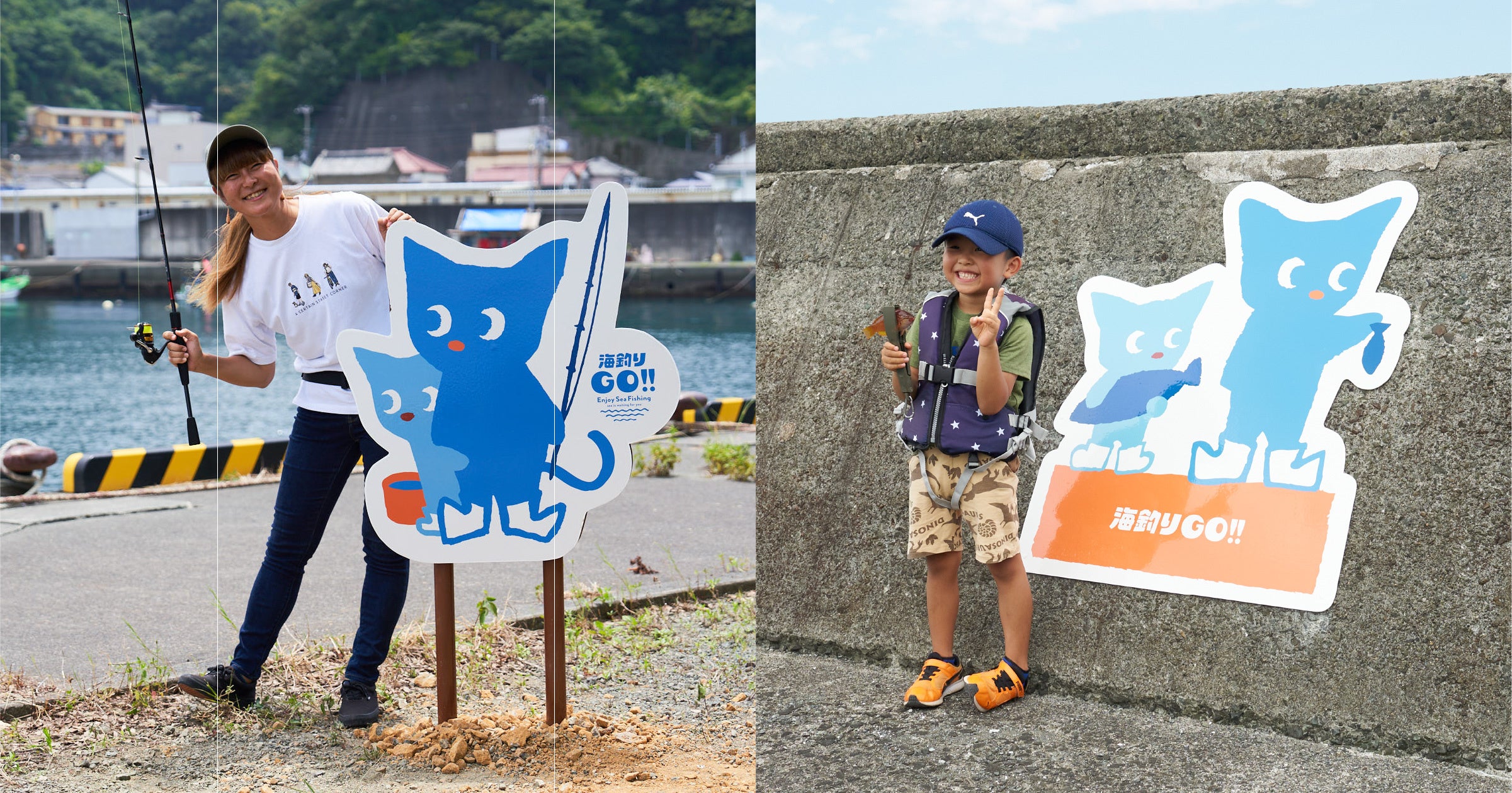 思いきり釣りを楽しんだ後は、フォトスポットで思い出づくり。それぞれの釣り場にフォトスポットをご用意。マスコットキャラクターのニャーゴが、釣りの思い出を彩ります。海や夕日を背景に、記念の写真を撮影しましょう。
