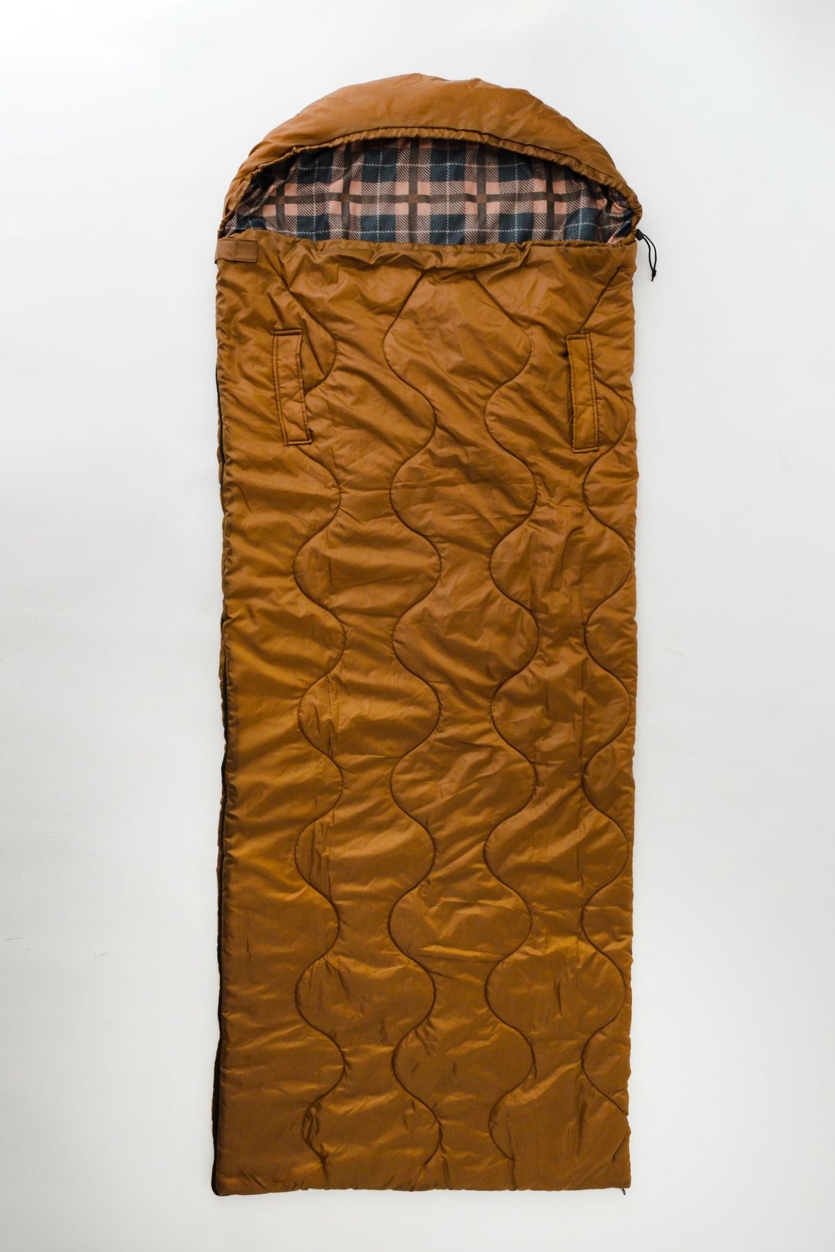 デザインも一般的な寝袋にあるような無地やショッキングカラーではなく、ユニセックスで使えるチェック柄を採用しています。その他にも、スマホ操作用の手を出すポケットや体温調節のために足を出せるWファスナー、内と外どちらからも開閉ができる両ファスナーなどの機能性を持たせています。