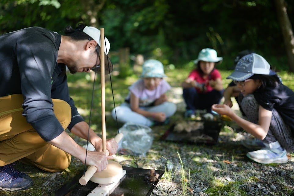 火起こしのツールを選んで火を起こす競争。ごはんを作るためには火がひつよう。