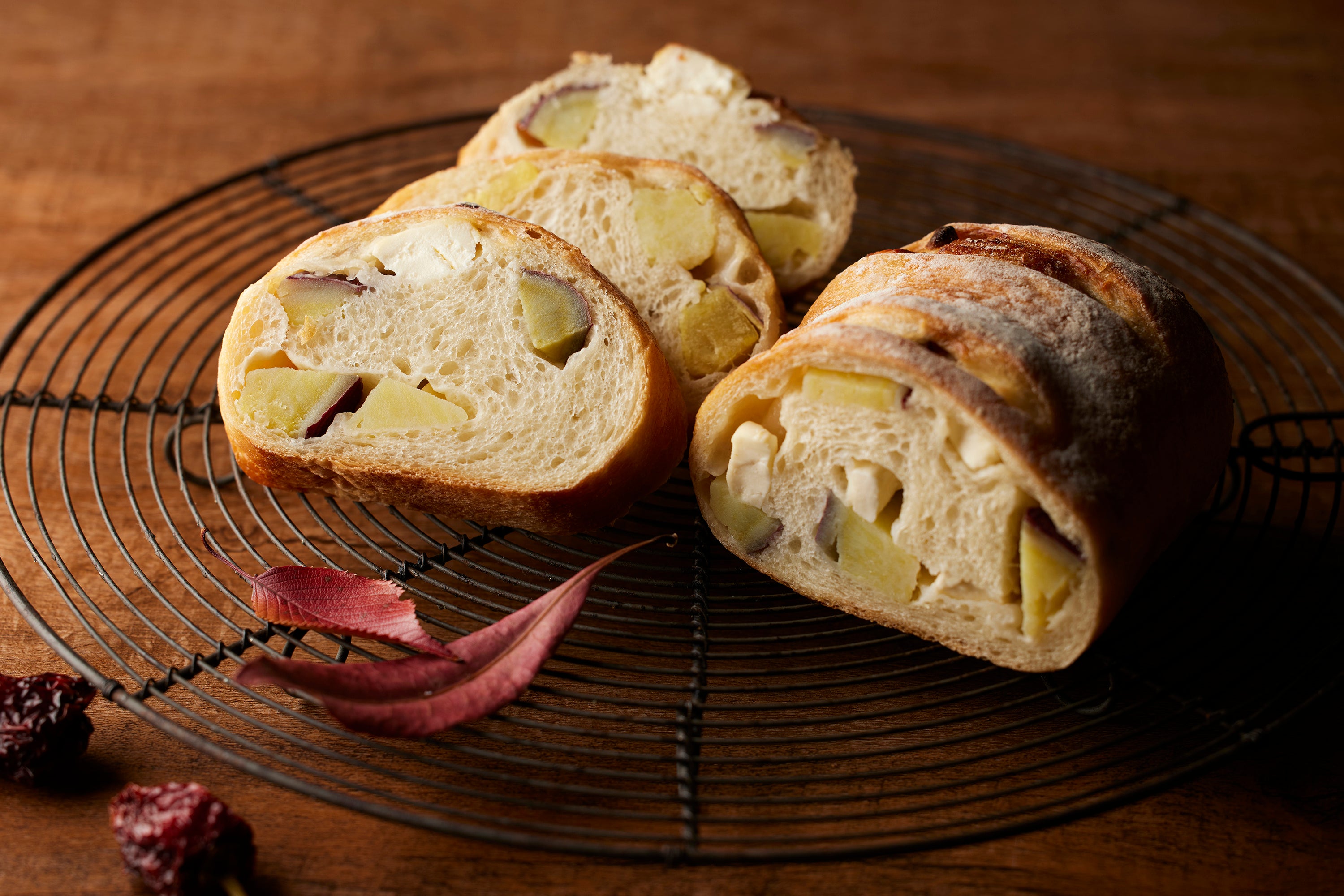 バゲット生地にさつまいもとクリームチーズを散りばめ、はちみつをかけて焼き上げました。さつまいもとはちみつの自然な甘さを、コクのあるクリームチーズの程よい塩味が引き立てます。
