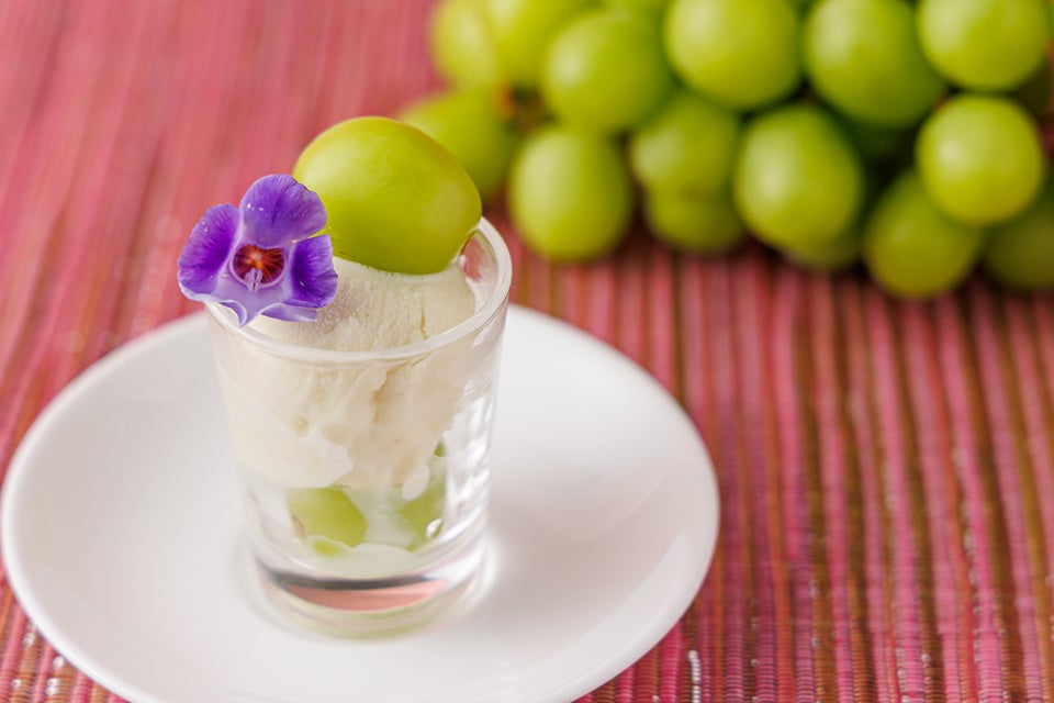 また、生ハムの塩味がアクセントの“桃とモッツァレラチーズのカプレーゼ”などのセイボリーや、ウェルカムグラスとして上品な甘みが楽しめる“シャインマスカットのアイスクリーム”もご堪能いただけます。
