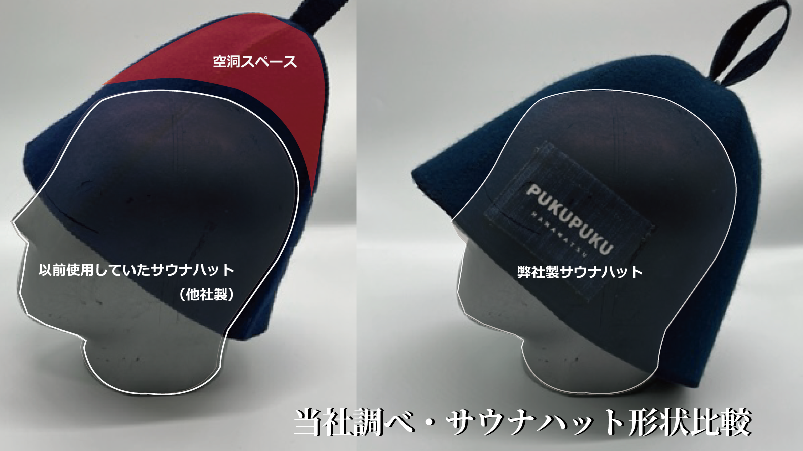 →従来の厚地のサウナハットでは、頭にのっかっている感じの商品が多いため、深さやフィット感を改良することで顔が見えそうで見えない、視野を確保しつつ、どこから見てもカッコよく、お洒落に見えるよう仕上げました。