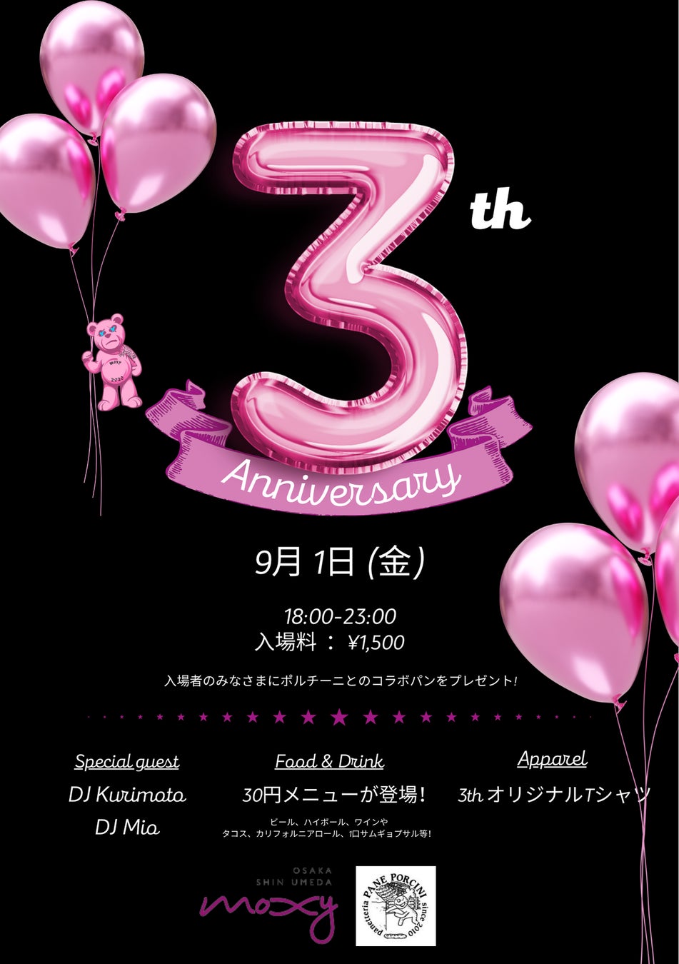 【モクシー大阪新梅田】9月1日に3周年記念イベントを開催!また、周年Tシャツ付宿泊パッケージを販売いたします。