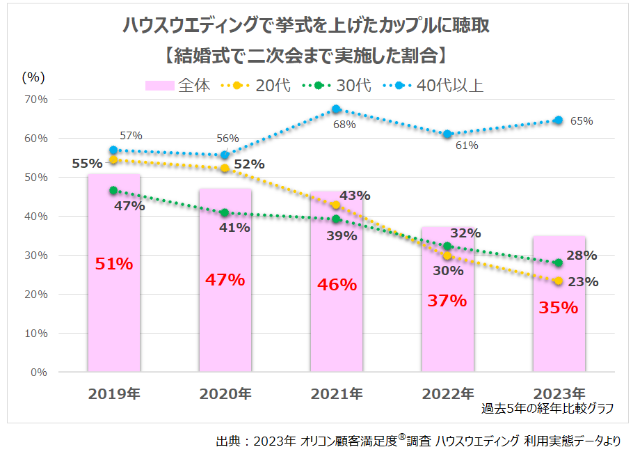 2023年の結婚式二次会実施率は35% 2019年比で16pt減少