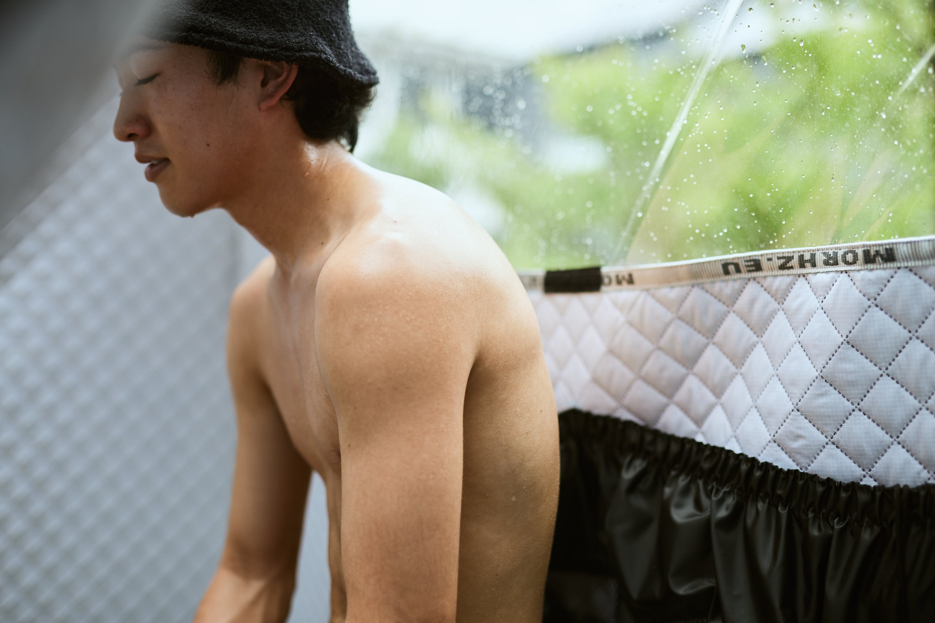 和多屋別荘の敷地に流れる嬉野川のほとりに立つテントサウナ。河畔の風景を眺めながらの外気浴や、源泉掛け流しで”不感温浴”と言われ体に負担をかけない34~37℃の掛け湯、樹木から採取した天然精油を用いた 「Yohaku」のアロマオイル(サウナドロップ)など、大らかな自然を感じ、心地よくととのうサウナを目指しました。