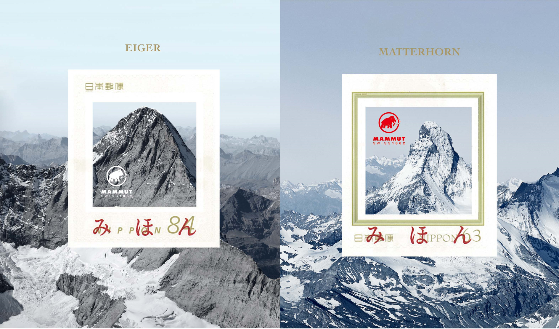 MAMMUT POP UP丸の内オープンを記念して、お買い上げ金額10,000円(税込)以上の方に、「マムート・オリジナル スイスの山の切手」をプレゼント致します。KITTE丸の内でのオープンに合わせて、スイスの名峰「マッターホルン」と「アイガー」をデザインしたオリジナル切手となっております。オープニングでしかもらう事の出来ない貴重な機会をお見逃しなく!山に登って、手紙を送ろう!
