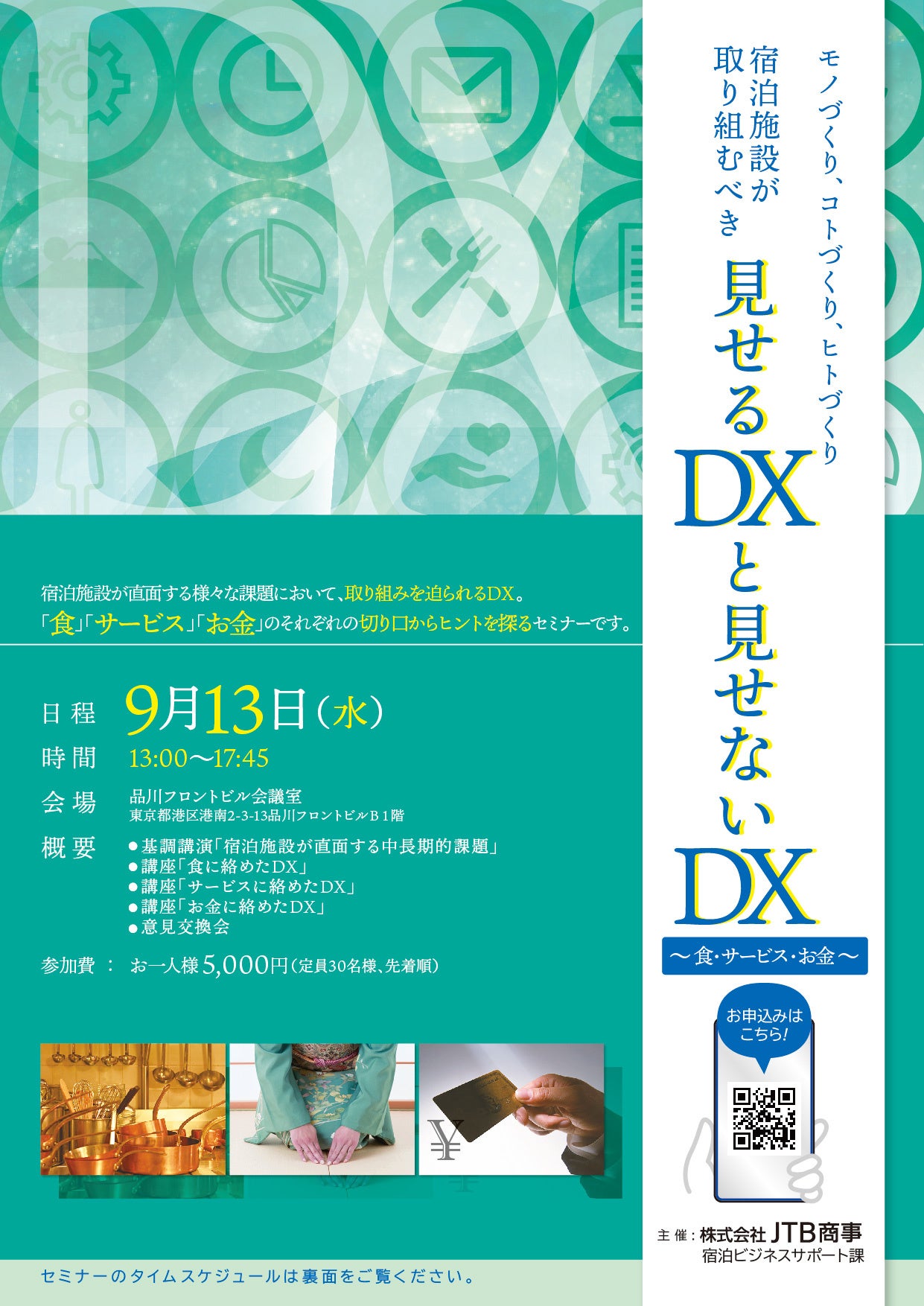 株式会社JTB商事は、2023年9月13日(水)に「宿泊施設が取り組むべき、見せるDXと見せないDX」と題し、セミナーを開催いたします。