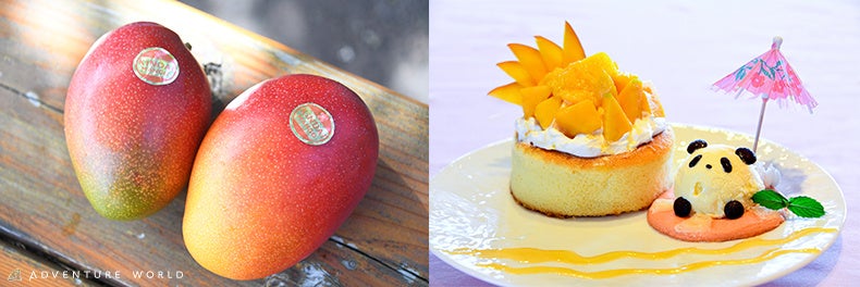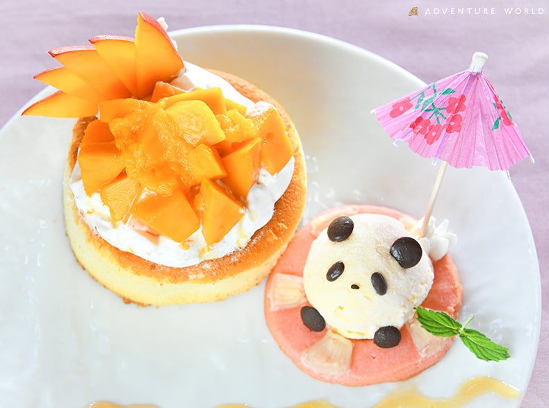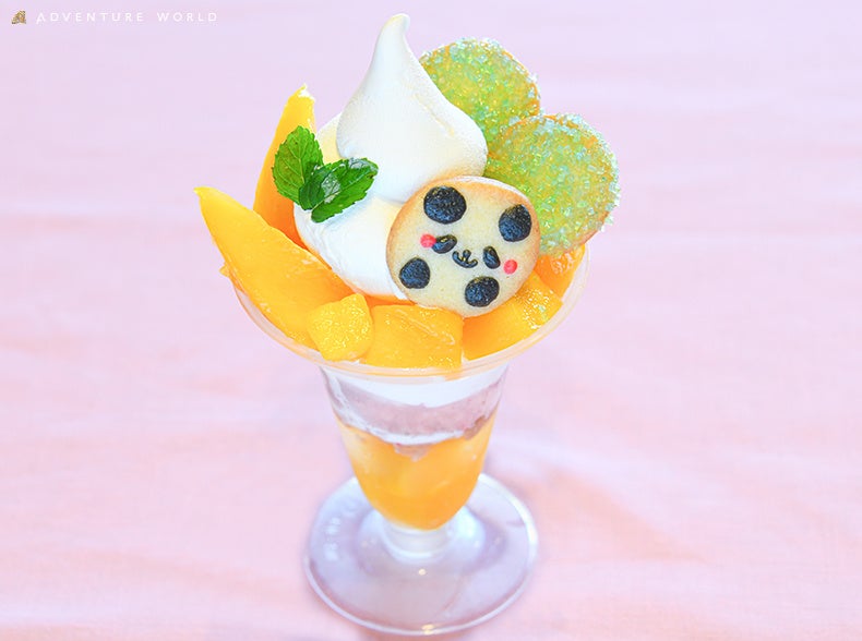 その「近大マンゴー」を使用したオリジナルメニューを期間限定で販売いたします。アドベンチャーワールドらしいパンダがモチーフの可愛く美味しいスイーツをぜひお楽しみください。