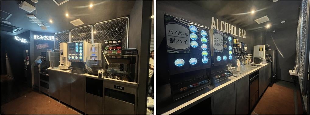 自動受付・精算はもちろん、ドリンクバー・アルコールバーも完備したフルセルフ店舗となります。