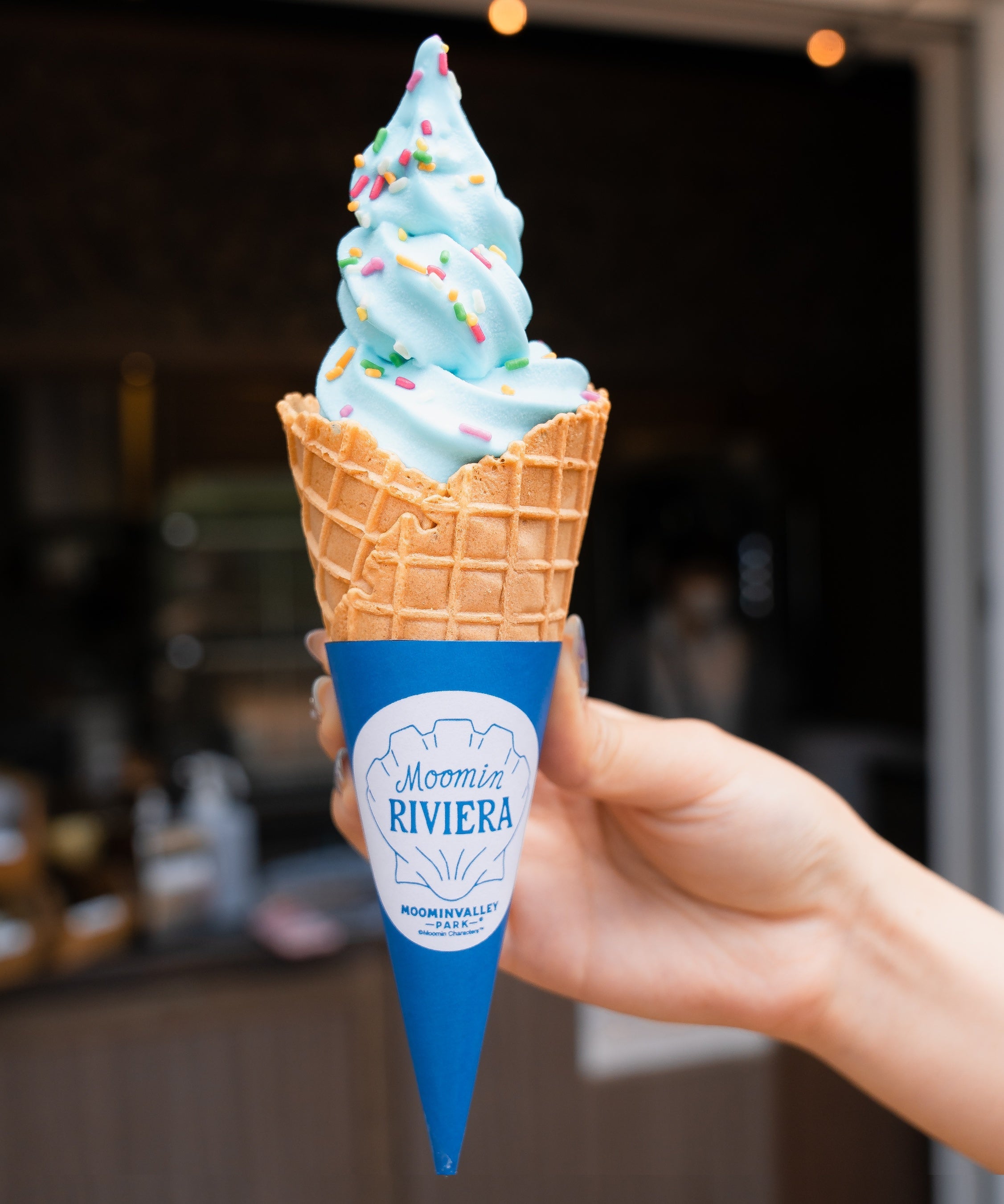 ラムネの味がしっかり。鮮やかな青色がきれいなソフトクリーム。