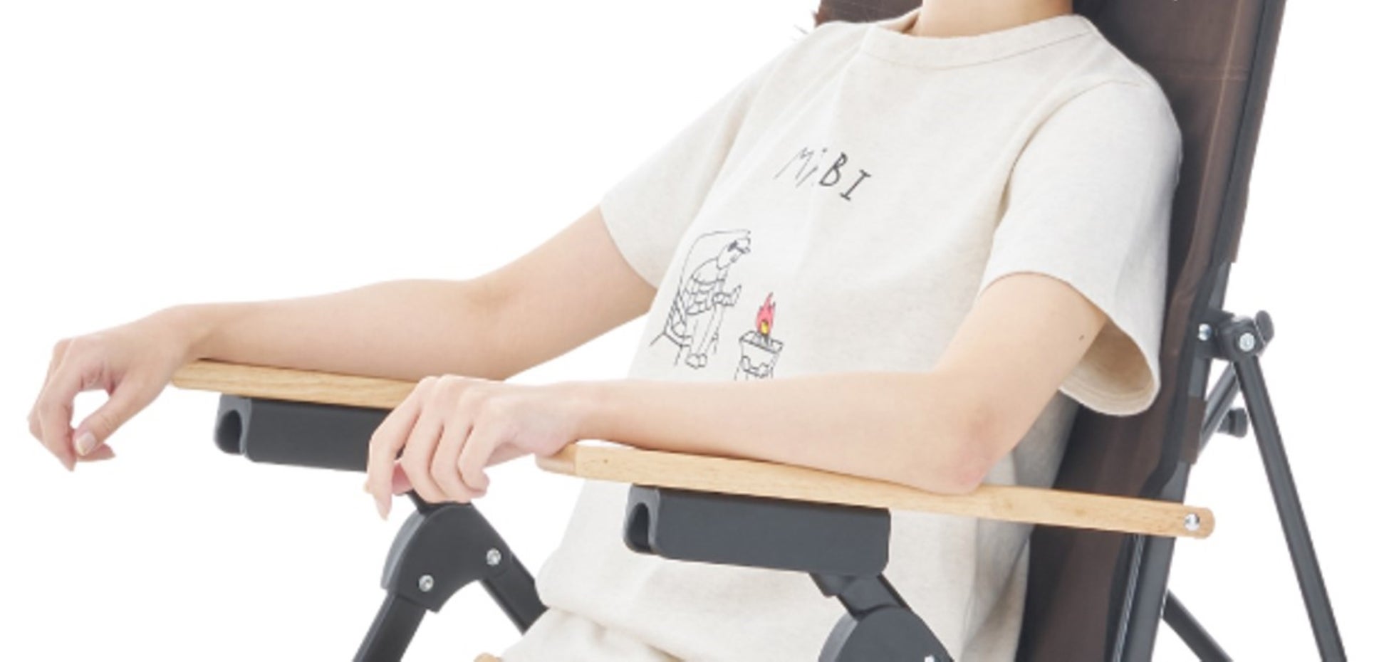 アウトドアはもちろん屋内にもよく馴染む木製アームレスト採用。腰を掛ける際や立ち上がりもラクラク。