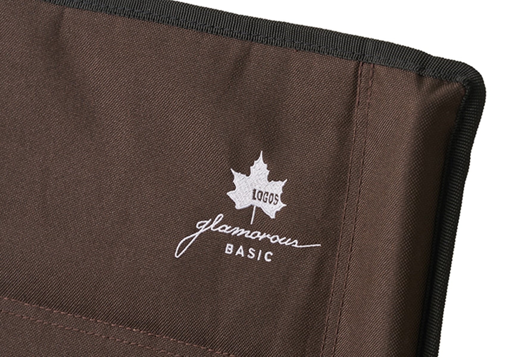 背面部分には、タオルやスマートフォンなどの小物の収納に便利な大型のポケットがついています。また背面に、左右に突っ張るバーを付けて背もたれに張りを出すことで、快適な座り心地を実現しました。さらに背もたれの上部にデザインされたLOGOSオリジナルのロゴは、刺繍になっているので劣化でロゴが消えてしまうことはありません。