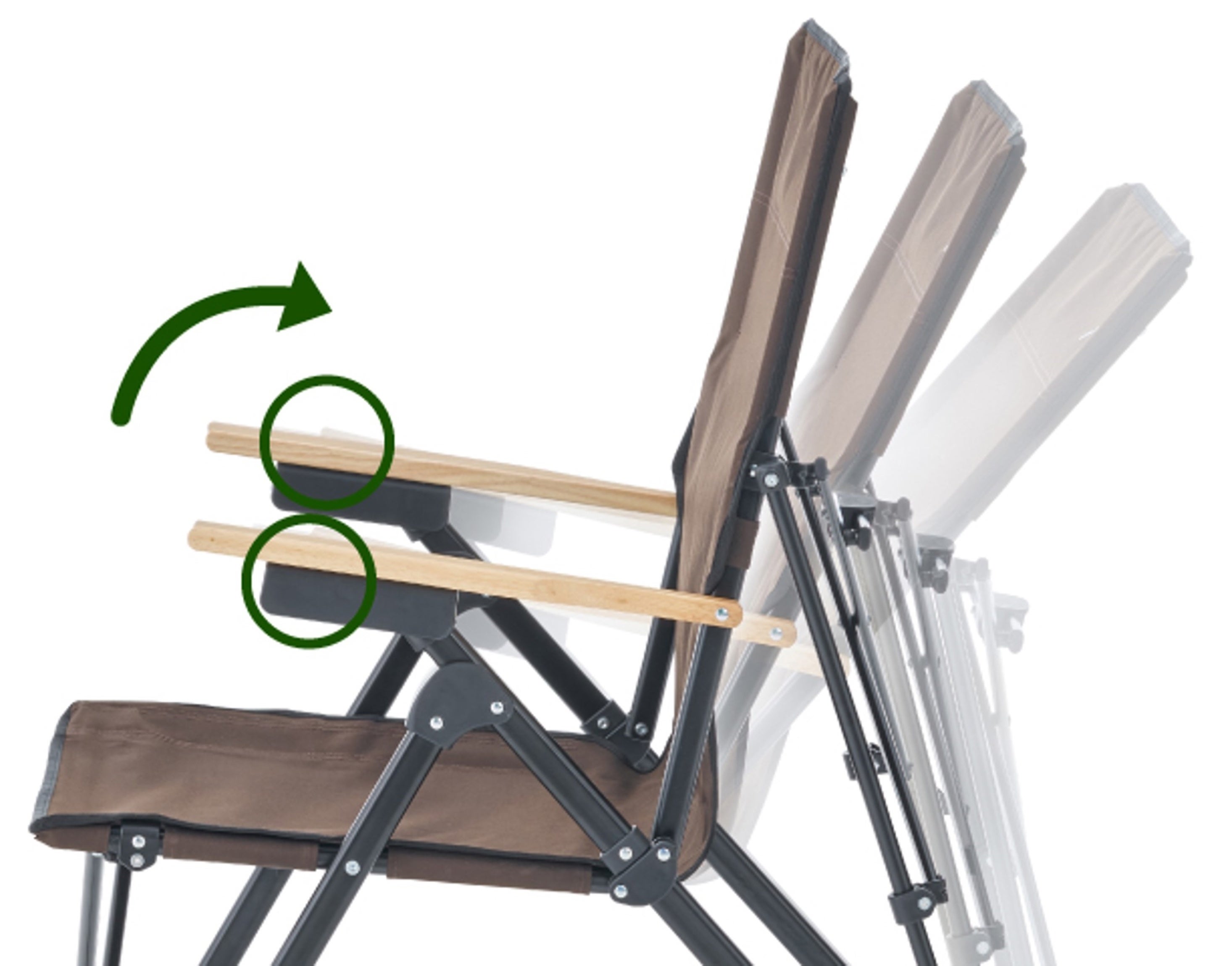アウトドアはもちろん屋内にもよく馴染む木製アームレスト採用。腰を掛ける際や立ち上がりもラクラク。