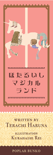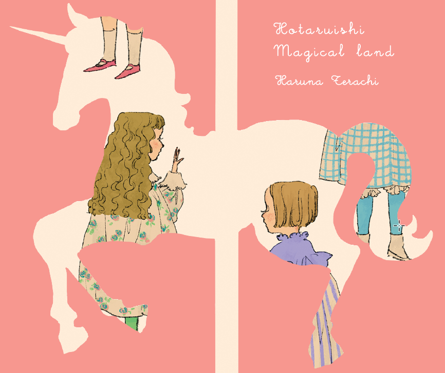 物語のキーアイテムでもあるメリーゴーラウンドの一角獣のシルエットの中に、四人の姿が浮かび上がり、遊園地で織りなされる人間ドラマを連想させます。優しいタッチが物語世界の雰囲気にぴったりです。