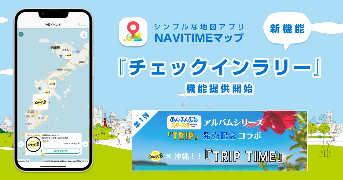 本機能の連携第一弾として、2023年8月4日(金)より、本アプリを活用して、ソーシャルゲーム「あんさんぶるスターズ!!」アルバムシリーズ発売記念 特別コラボ『TRIP TIME』チェックインラリーが開催されます。
