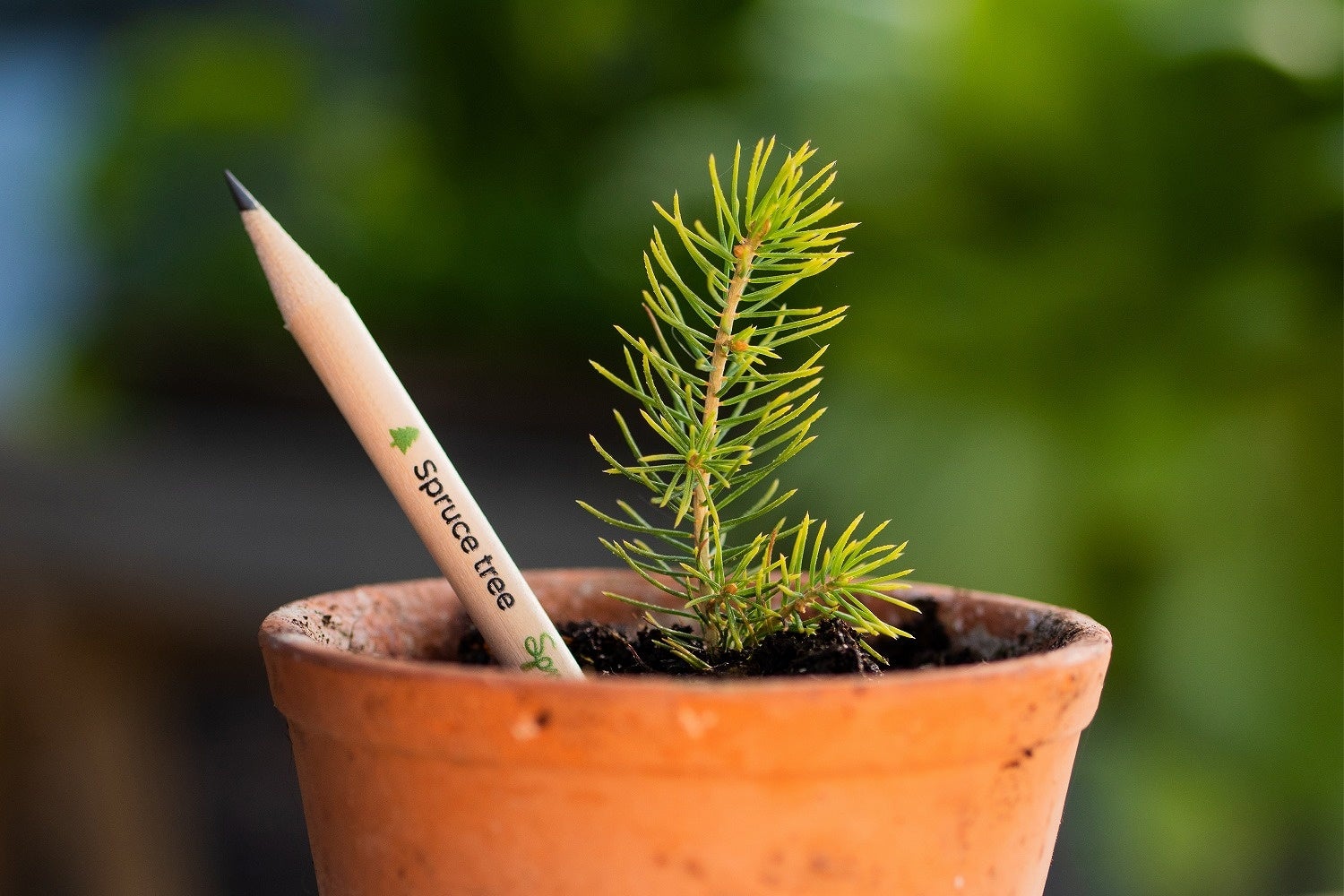 使い捨てペンも環境配慮へ「植えると芽が出る鉛筆」