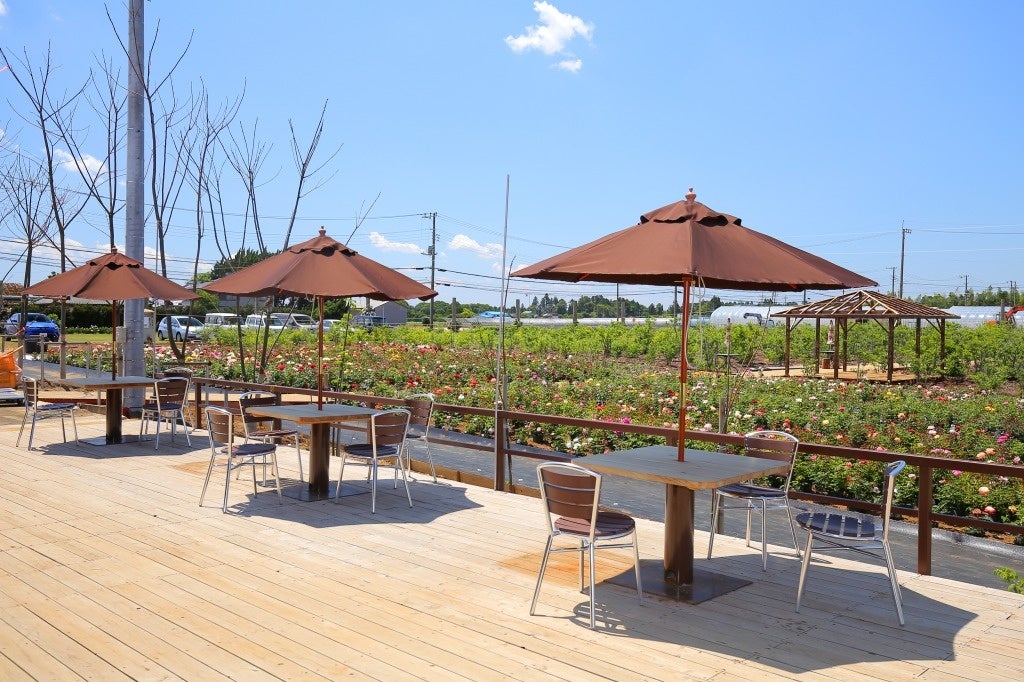 成田ファームランドは、総面積25,000平米の敷地に数百席のテラスを設けており、恐らく日本で一番広いカフェテラスを設けた施設になっています。そして、時期に合わせて変わるバラ園や景色を見ながら、当店のかき氷やそのほかのスイーツなどを召し上がることができます。この夏のドライブや旅行先にぴったりの施設となっています。