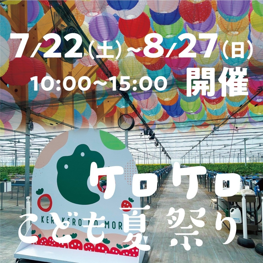 ケロケロこども夏祭りでは、通常のいちご狩りの他にお子様にお楽しみ頂けるさまざまな催しものを開催いたします。