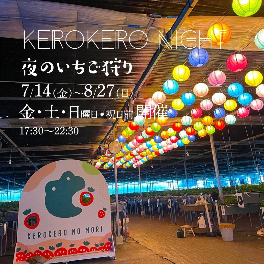 ケロケロの杜は、宮城県名取市にて2023年1月にオープンした、1年中いちご狩りが楽しめる観光いちご園です。最大6品種の食べ比べが可能で、厳選された品種を心ゆくまでお楽しみいただける施設です。お子様用のお土産用ケロケロカップや、高さを自由に変えられる吊り下げ型いちごベンチ、カエルのキャラクターを使ったオリジナルグッズの販売など、他園では見られない様々な取り組みで、お客様に選ばれるいちご園を目指しております。