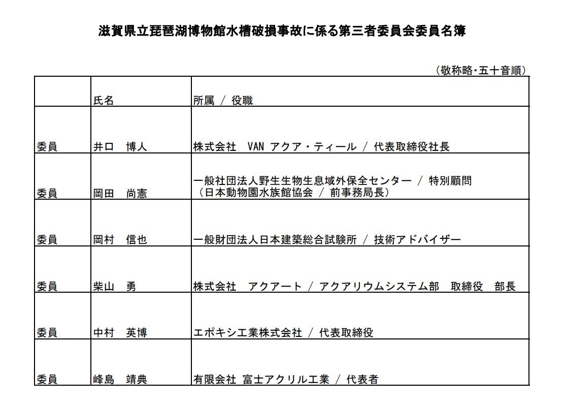 2月10日に発生した水槽破損事故等に関して「滋賀県立琵琶湖博物館水槽破損事故に係る第三者委員会」第4回会議を下記のとおり開催します。