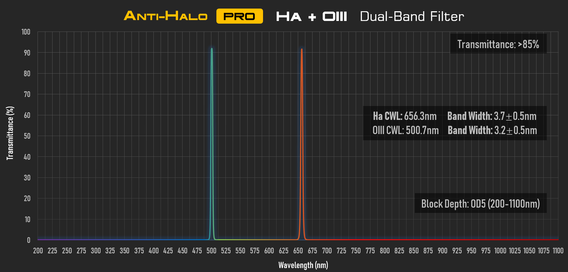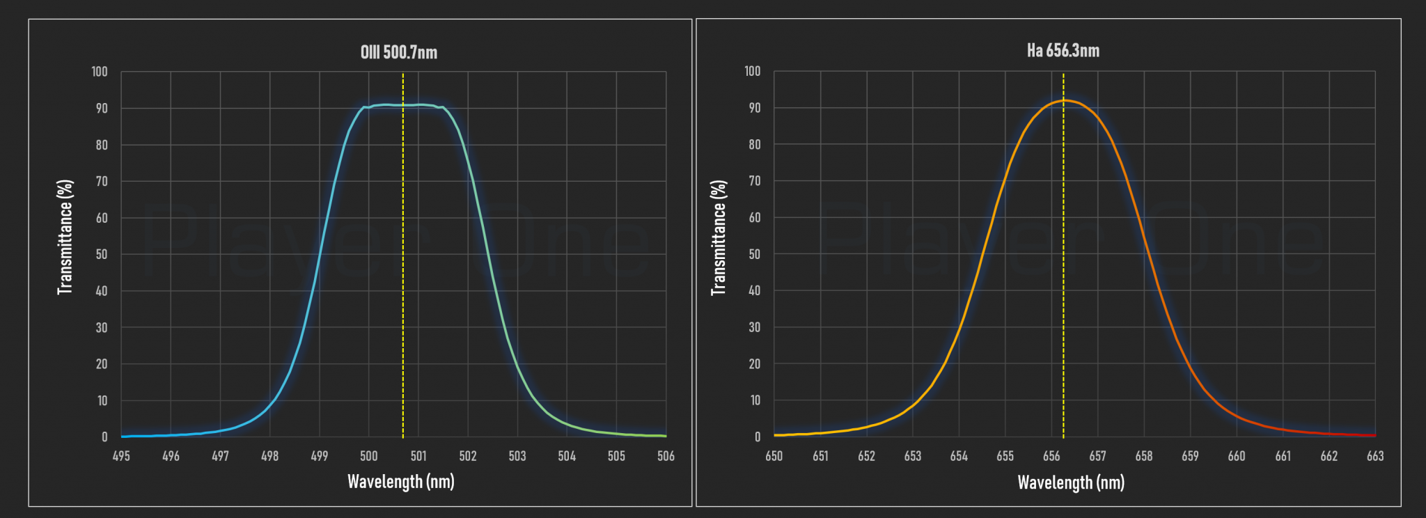 透過波長:Hα(656.3nm FWHM3.7±0.5nm)/OIII(500.7nm FWHM3.2±0.5nm)